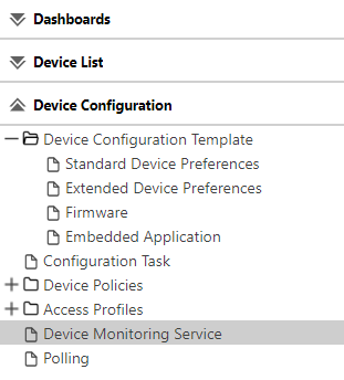 When a new Device Monitoring Service (DMS) is registered with CloudStream, a new DMS option appears in the Device Configuration list.