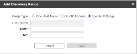 Select one Range type, and then enter the Host name (if necessary), and the From and To IP Address range or a single IP Address based on your range selection.