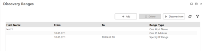 To set the discovery range, click on the entry in the list to select it and view the Discovery Ranges screen.