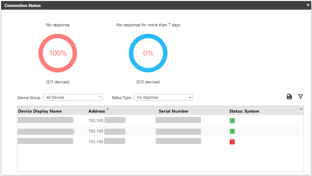 The second donut chart (No response for more than 7 days) shows the data of devices that had no response more than seven days from today.