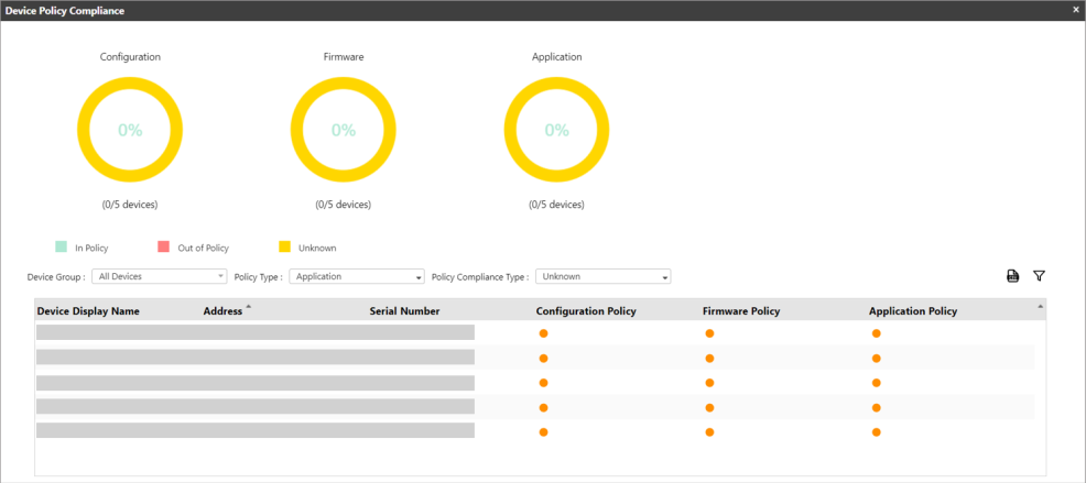 An 'Unknown' status is attained if the Policy Check or Apply is currently being processed. If the device is not assigned to any device policy, then it will be considered 'Unknown'. |