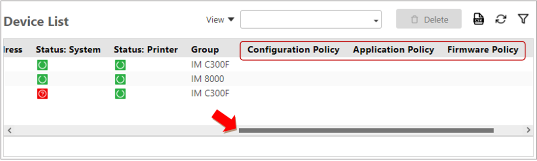 Scroll to the right to see the policy status columns.