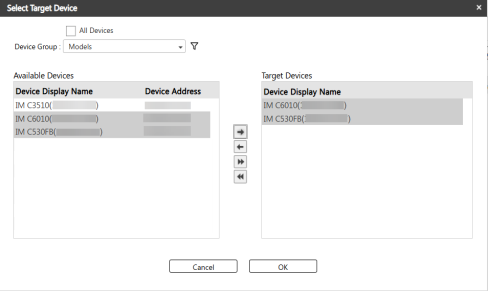 Clicking this button will display the "Select Target Devices" pop-up dialog.