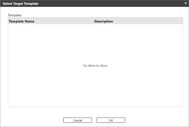 Closes the "Select Target Template" dialog, and the templates listed in the Target Templates pane are then displayed in a list with their template name and description.