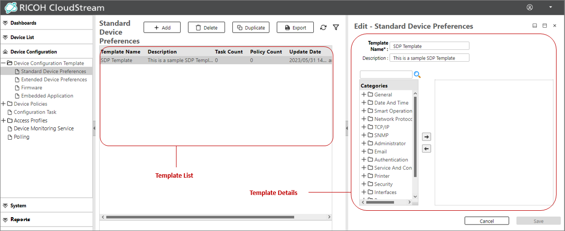 Standard Device Preferences (SDP) - This template helps you update general setting items that do not depend on the model.