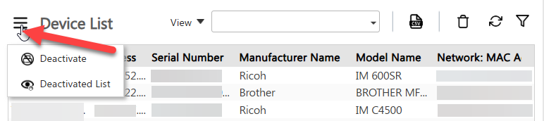 To view the deactivated list and reactivate devices