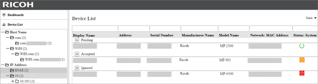 When you open the WfH or $NA$ group, the devices are grouped based on their state, as you can see in the image below.