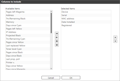 Click [Change...] to display the dialog where you can set the columns that will be included when the report is generated.