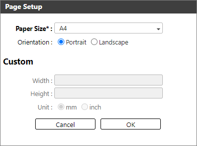 6. Click [Change ...] to display the Page Setup dialog box and select the paper size and orientation.