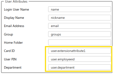 The Home Folder attribute is not supported for OKTA.Card ID