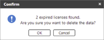 If there is at least one expired license in the list, a pop-up dialog will display showing the number of expired licenses about to be deleted. Click [OK] on the dialog to remove the expired licenses. An example is shown below.