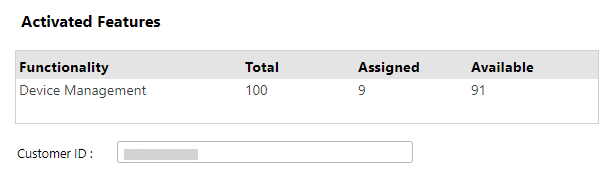 Scroll down to view your Customer ID shown beneath the Activated Features section.